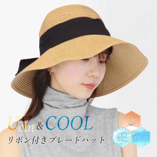 ブレードハット レディース UVカット UPF50+ 接触冷感 クール リボン 帽子 ハット UV対策 手洗い 折りたたみ 春夏 おしゃれ *00