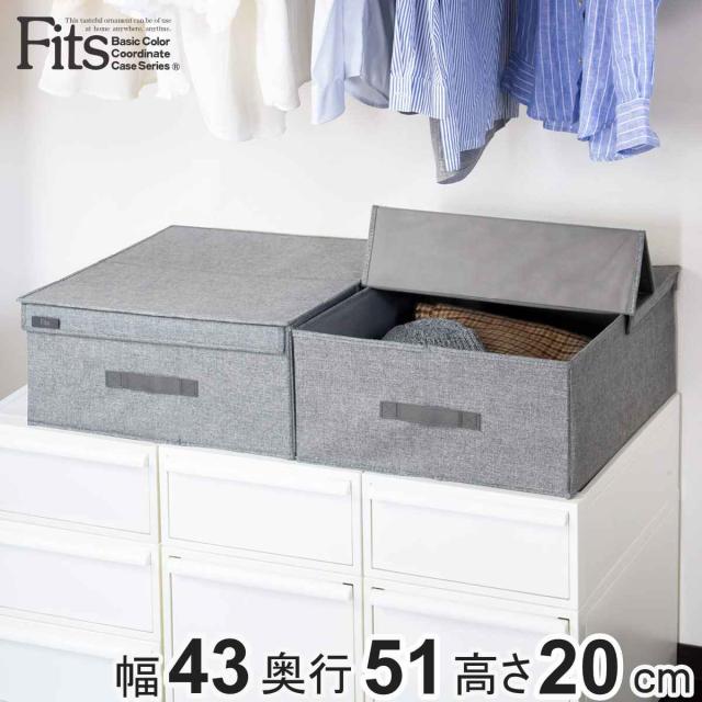 収納ボックス L ハーフオープン フィッツファブリック 幅43×奥行51×高さ20cm ( 収納ケース 衣装ケース フタ付き 取っ手付き クローゼット 収納 Fits 天馬 フィッツ 布製 衣類 小物 折りたたみ コンパクト 衣替え 棚上 整理整頓 )