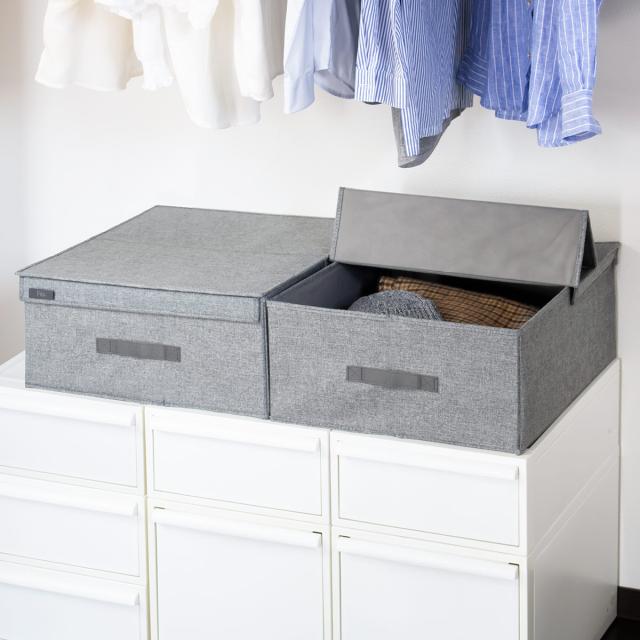 衣類や冬用ニット、ブランケットなどを収納するのに最適です。フタ付きなのでホコリなどの侵入も防ぎ安心して保管できます。