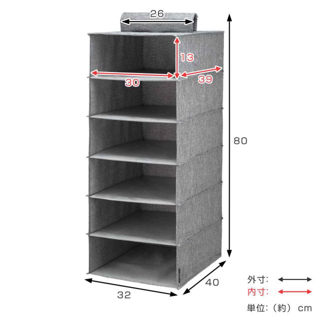 吊下げ収納 M ハンギングラック フィッツファブリック 幅32×奥行40×高さ80cm ( クローゼット 収納 吊り下げ 6段 衣類 バッグ 帽子 吊るす Fits フィッツ 天馬 小物 靴 クローゼット収納 収納ラック 折りたたみ 省スペース )