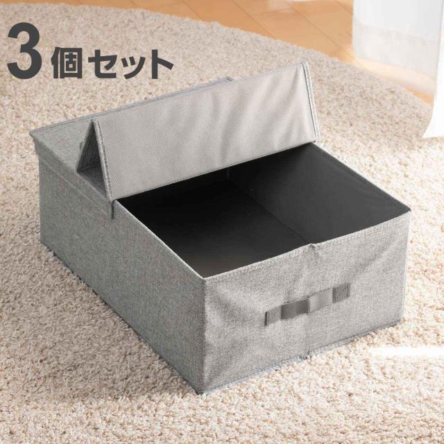収納ボックス M 3個セット ハーフオープン フィッツファブリック 幅38×奥行51×高さ20cm ( 収納ケース 衣装ケース 取っ手付き クローゼット 収納 Fits 天馬 フィッツ フタ付き 布製 衣類 小物 折りたたみ コンパクト 衣替え 棚上 )