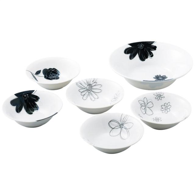 直径21.5cm高さ6cmボウル(大)1客・直径14.5cm高さ4cmボウル(小)5客(5柄)・磁器・[日本製]