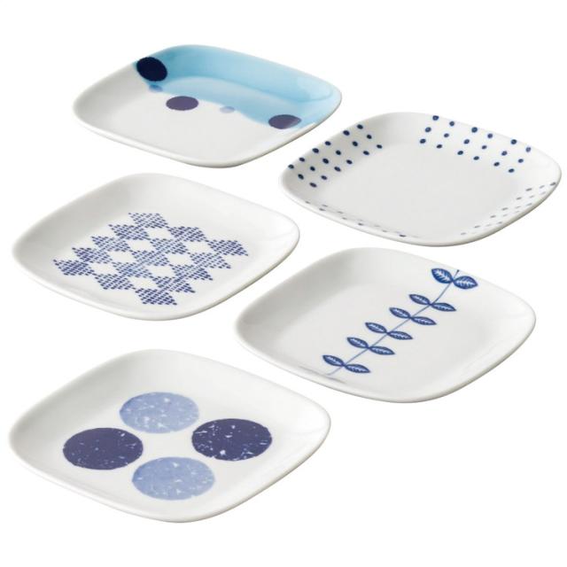 14.5×14.5cmトレー5枚(5柄)・磁器・[日本製]