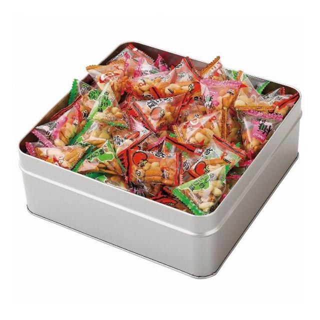 4種類の柿の種(醤油味・わさび味・梅味・カレー味)にピーナッツを組み合わせた柿ピーの詰合せ商品です。テトラタイプの個包装に仕上げております。また窒素ガスを充填しております。