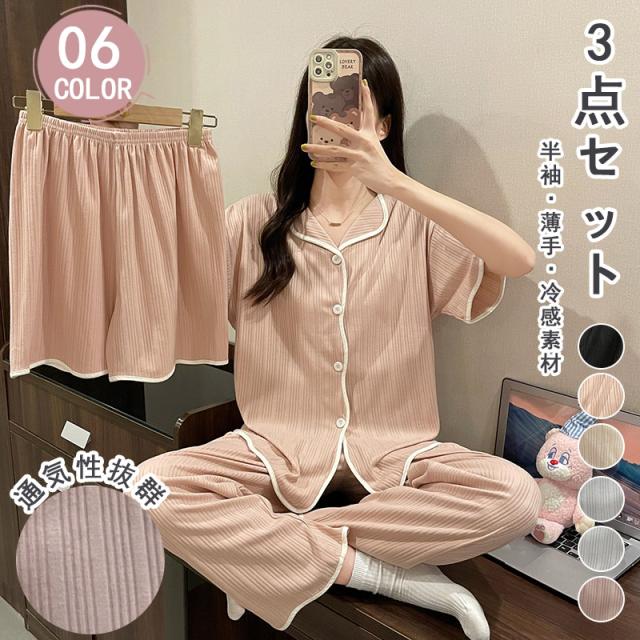 パジャマ 半袖 ルームウェア レディース ショート通気 パンツ 涼しい 部屋着 3点セット 春夏 可愛い 柔らかい 女性 部屋着