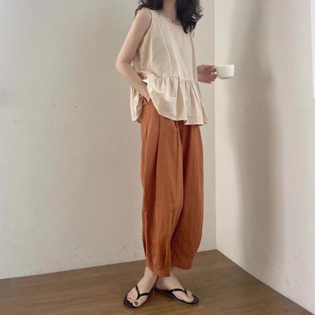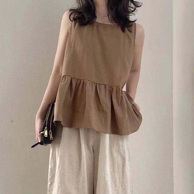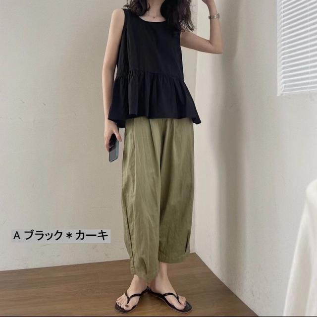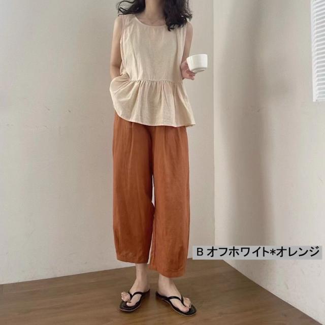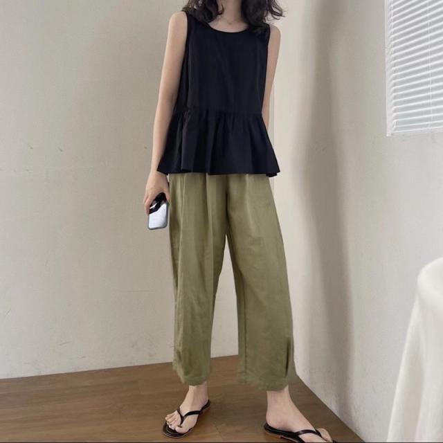 送料無料 レーディスセットアップ タンクトップ 綿 麻 さらさら かわいい オシャレ 夏服 トップス ノースリーブ ベスト 無地 カジュアル Uネック 薄手 フリル 20代 30代 40代 50代 お徳 女性らしい