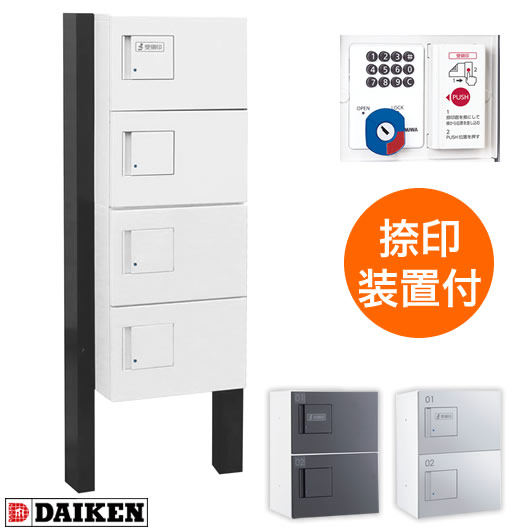 ダイケン 宅配ボックス ポールセット TBX-F1SSN-W+TBX-F1SS-W+TBX-PZ 前入れ前出し ホワイト色 プッシュボタン錠 捺印装置付