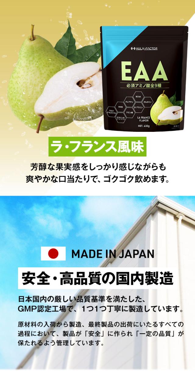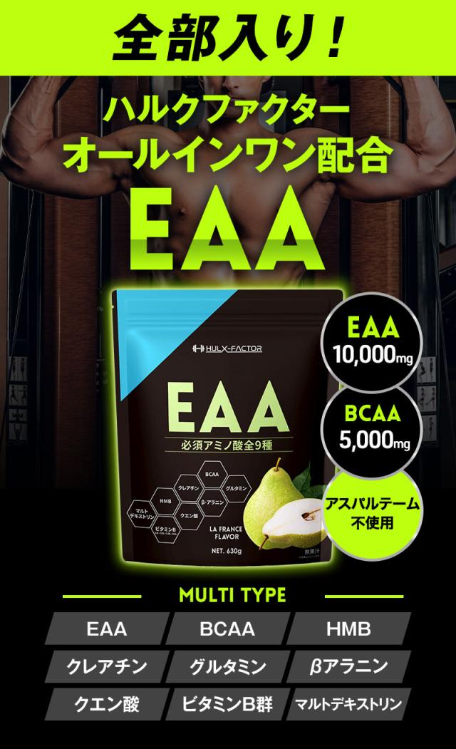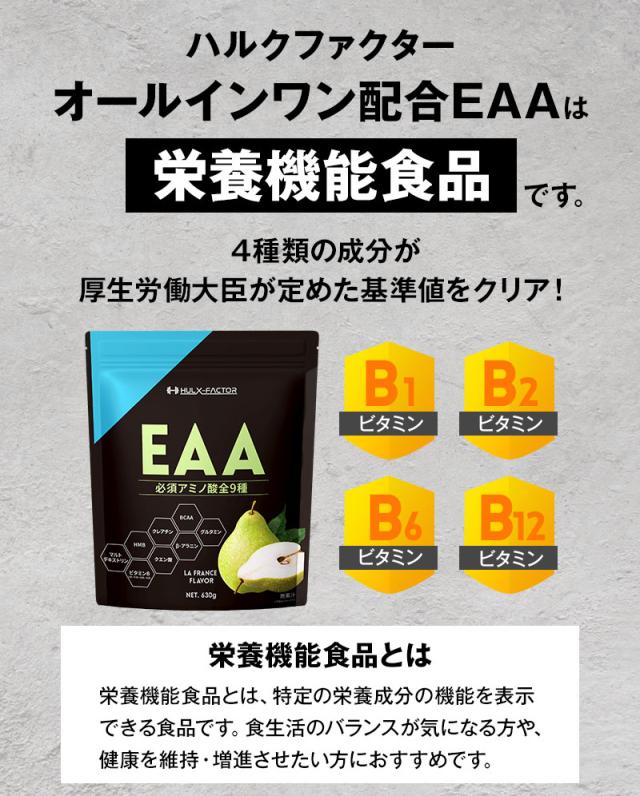 [送料無料][マルチアミノ酸]EAA パウダー 必須アミノ酸 9種類【BCAA / β-アラニン / HMB / クレアチン / グルタミン / クエン酸 / ビタミンB群 / マルトデキストリン 配合】ハルクファクター サプリ ラフランス風味 栄養機能食品 プロテイン 西洋梨 洋梨 洋なし アスパルテーム不使用