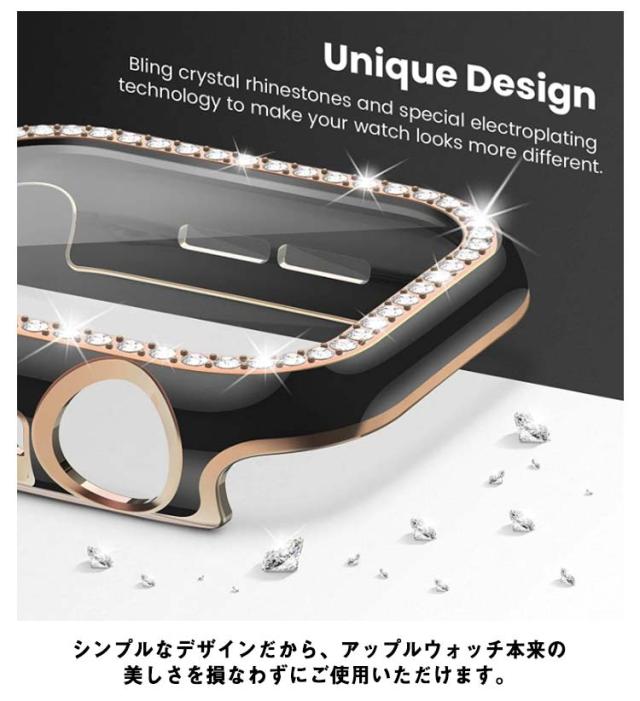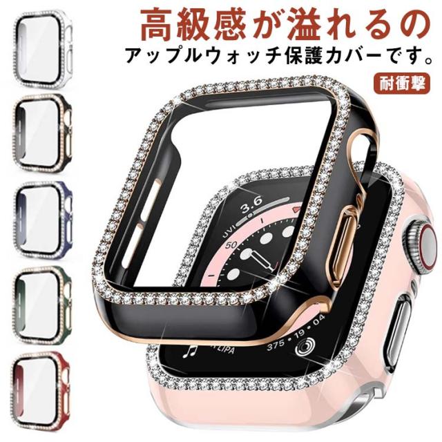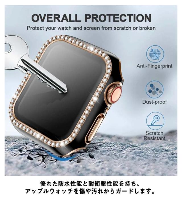 Apple Watch 用防水ケース series7/6/SE/5/4/3 アップルウォッチ 保護カバー ガラスフィルム 一体型 PC素材 全面保護 超薄型 装着簡単 耐衝撃 指紋防止 傷防止 キラキラ 可愛い 送料無料