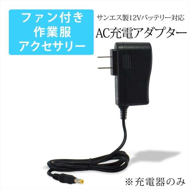 サンエス製12V仕様のバッテリーの充電に対応したAC充電アダプターです。