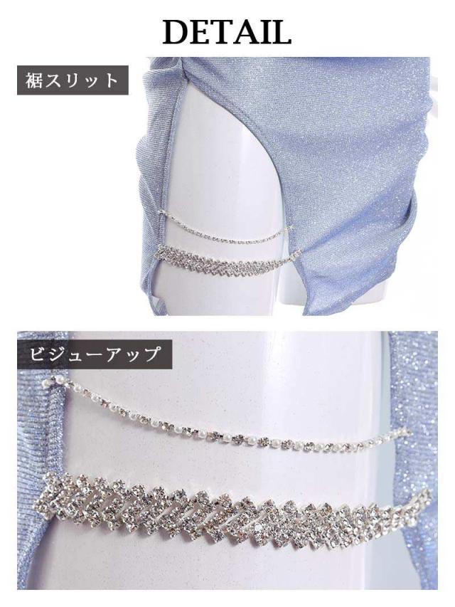 ☆サイドビジュー越しに魅せる脚魅せがセクシーな印象を醸し出すキャバドレスに仕上がっています。