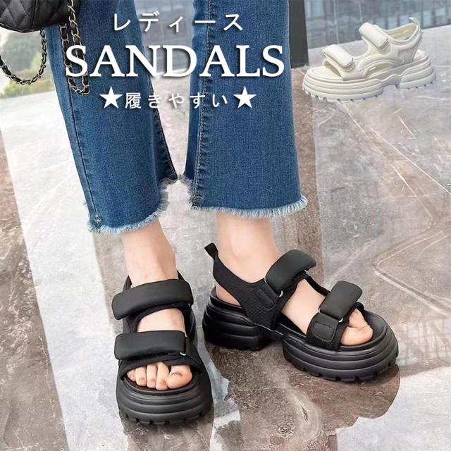 サンダル レディース スポーツサンダル ビーチサンダル サマー 夏 厚底 スニーカーサンダル マジックテープ カジュアル