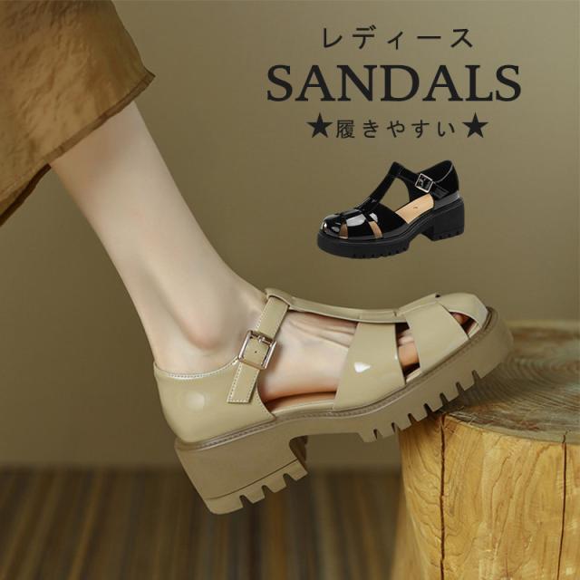 サンダル グルカサンダル レディース サマー ナースサンダル 編み込み 厚底 軽量 滑り止め 歩きやすい 通勤通学 疲れない クロ