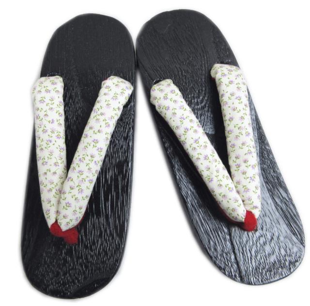 下駄 桐 女性用 フリー 24cm 漆黒台 白色地可憐小花 浴衣 ゆかた 甚平 げた ゲタ レディース 和柄