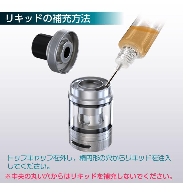トップキャップを外し、楕円形の穴からリキッドを注入してください。