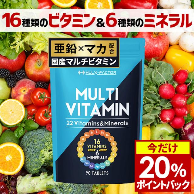 【20%ポイント還元!1/16 9:59まで】[送料無料]ハルクファクター マルチビタミン & ミネラル サプリ 90粒 打錠 ビタミン 16種類 ミネラル 6種類 亜鉛 マカ バイオぺリン 乳酸菌 ビフィズス菌 517種類の成分 ダイエット 美容 健康 サポート タブレット