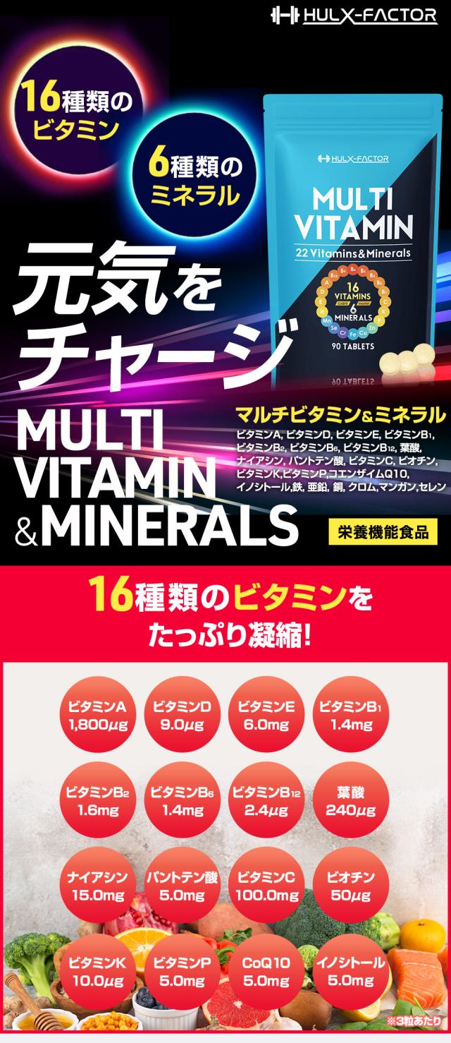 10%OFFクーポン配布中![送料無料]ハルクファクター マルチビタミン&ミネラル サプリ 90粒 ビタミン 16種類 ミネラル 6種類 亜鉛 マカ バイオぺリン 乳酸菌 ビフィズス菌 517種類の成分 ダイエット 美容 健康 サポート 栄養機能食品