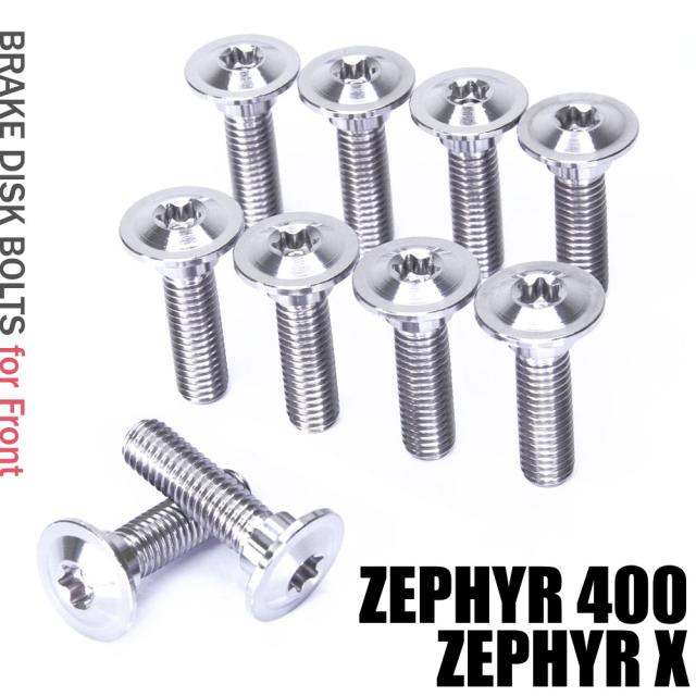 チタンボルト カワサキ ゼファー400/ゼファーX専用 ブレーキディスクボルト フロント用 10本セット M8×30 P1.25 シルバー 軽量化 カスタム ネジ