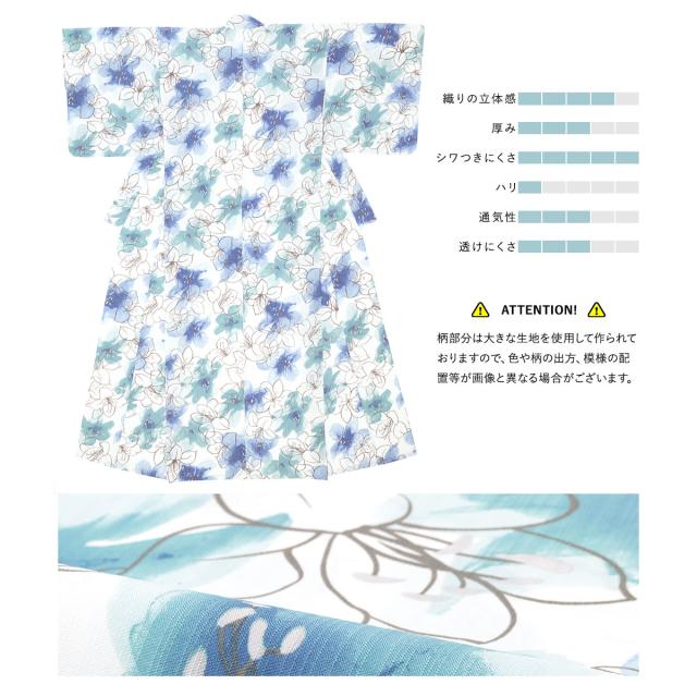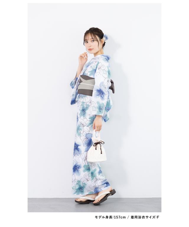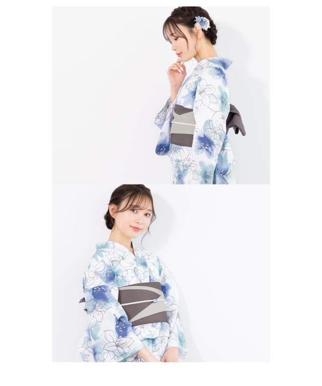 浴衣 セット レディース 浴衣セット 半幅帯 2023 大人 3点セット ホワイト 白 水色 青 百合 花 フラワー グレー S フリー 送料無料