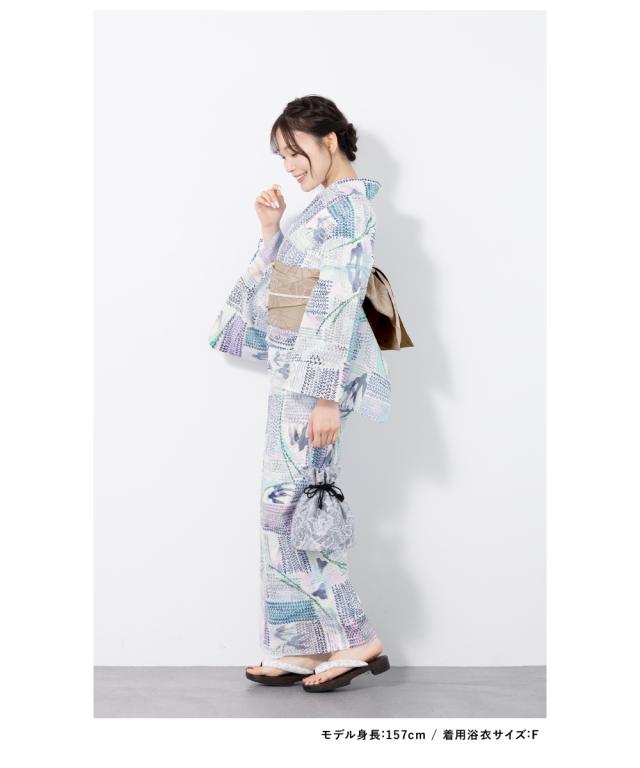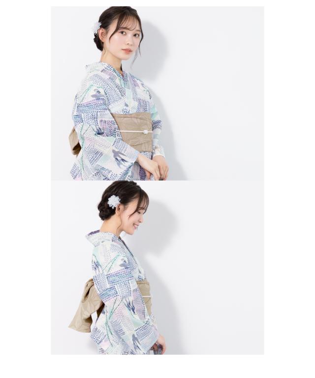 浴衣 セット レディース 浴衣セット 半幅帯 2023新作 大人 3点セット 金子みすゞ みすゞうた 楊とつばめ ブルー 青系 ベージュ フリーサイズ 送料無料