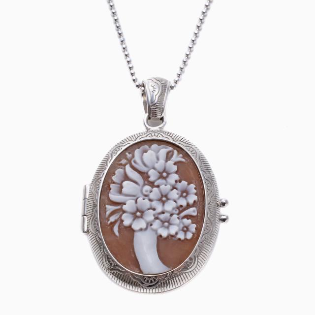 お誕生日や特別な日に送る贈り物にもおすすめのカメオロケットペンダントです。