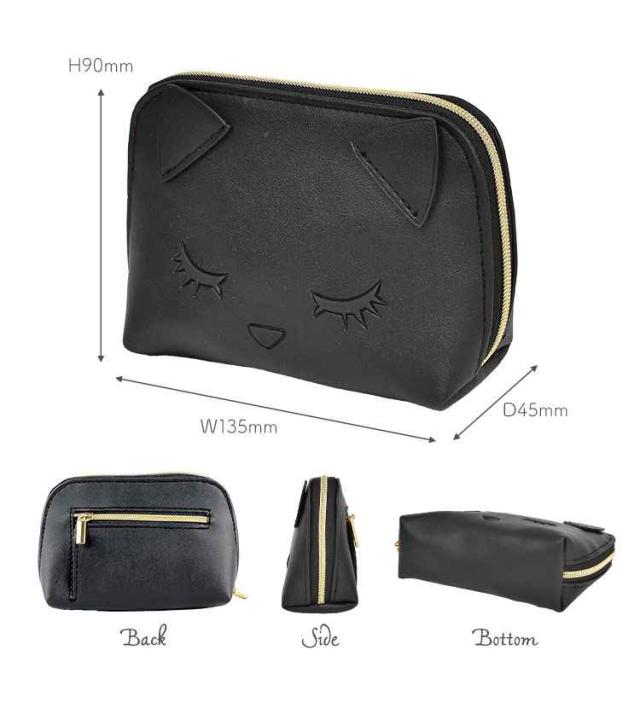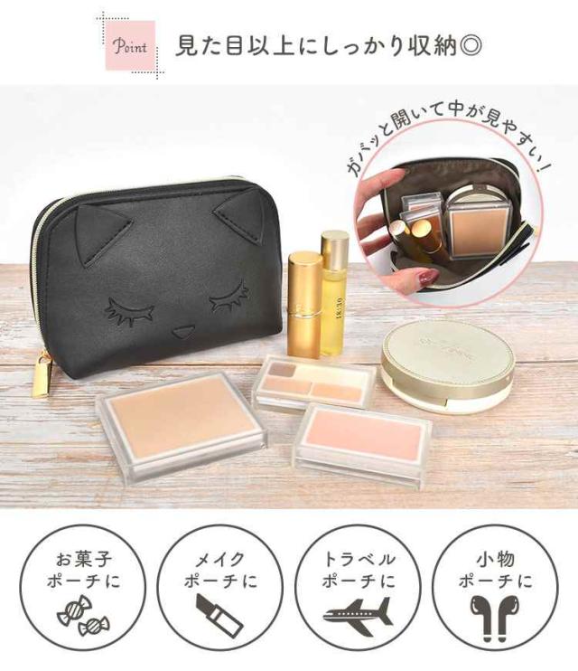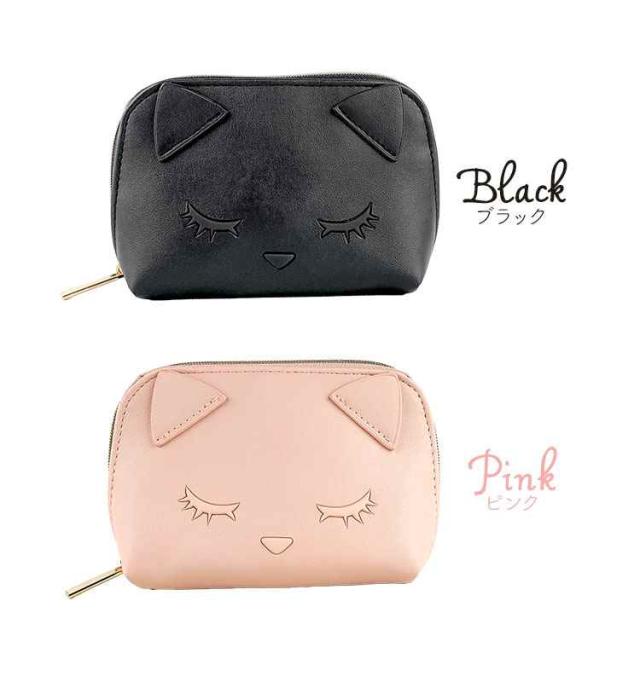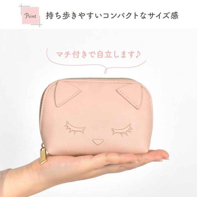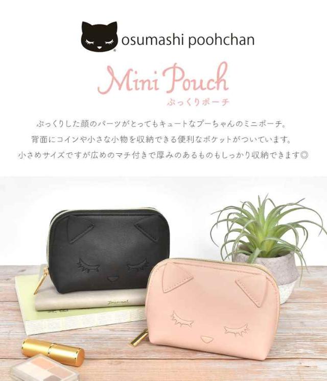 ポーチ 小物入れ おすましプーちゃん 猫 ねこ かわいい おしゃれ レディース 猫柄 ミニポーチ マチあり ファスナー ポケット 小さめ 自立 メイクポーチ コスメ 化粧 旅行 小銭入れ 大人 女性 女子 通勤 通学 持ち運び キャラクター 猫モチーフ 黒 ブラック ピンク 合皮