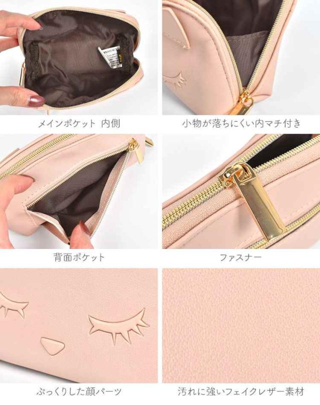 ぷっくりした顔のパーツがとってもキュートなミニポーチ。小さめサイズですが広めのマチ付きで厚みのあるものもしっかり収納できます◎背面にはコインなど小物を収納できる便利なポケット付き。ギフトにもおすすめです♪