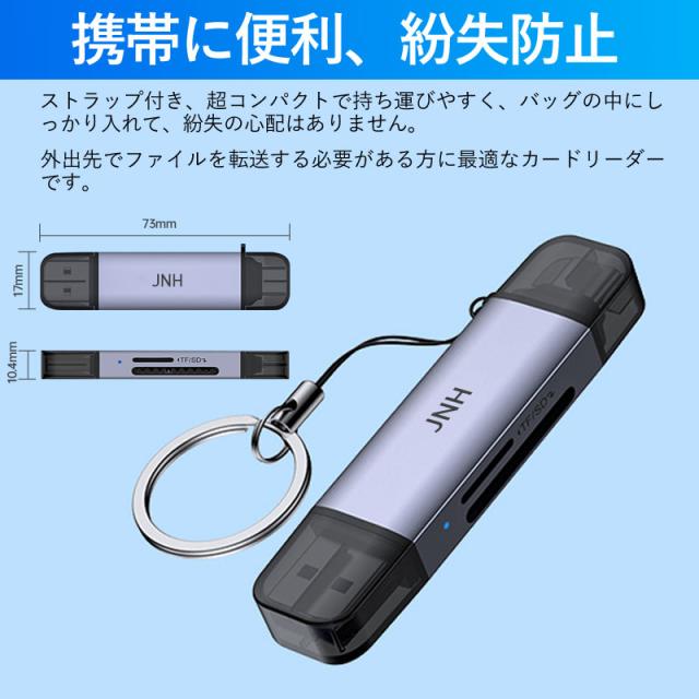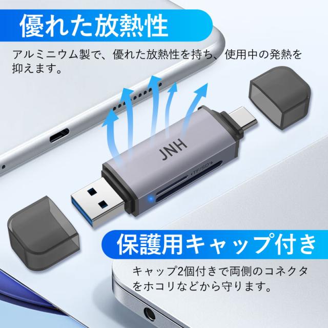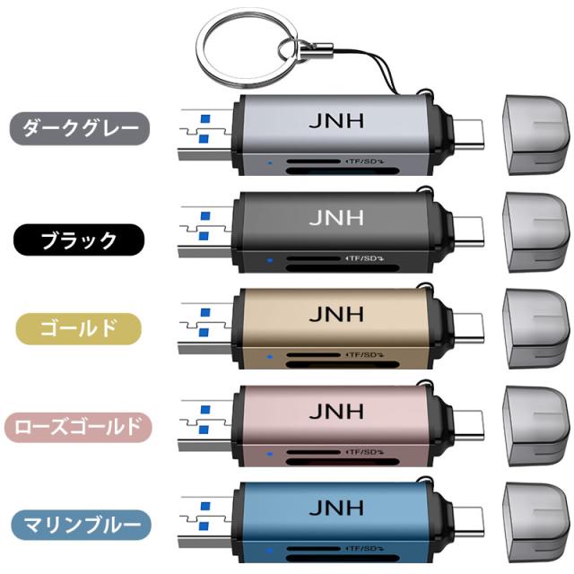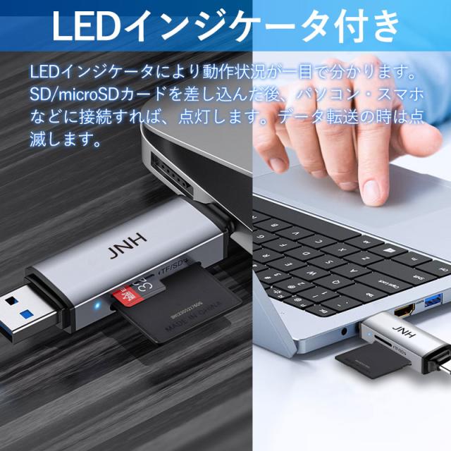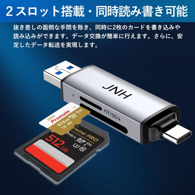 JNH SDカードリーダー USB 3.2 Gen 1 UHS-I DDR200 モード Type-C OTG対応 5Gbps超高速転送最高190MB/s 2-in-1 SDXC microSDXC カードリーダー 容量不足 解消 写真 動画 音楽 データ移行 ネコポス送料無料CR-UD201 ポイント消化