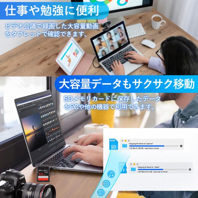 ■2枚カード同時に読み書き:SDスロットとmicro SDスロットを備え、2つのカードに同時に読取と書込を行うことが可能で、カードを差し替える手間が必要ありません