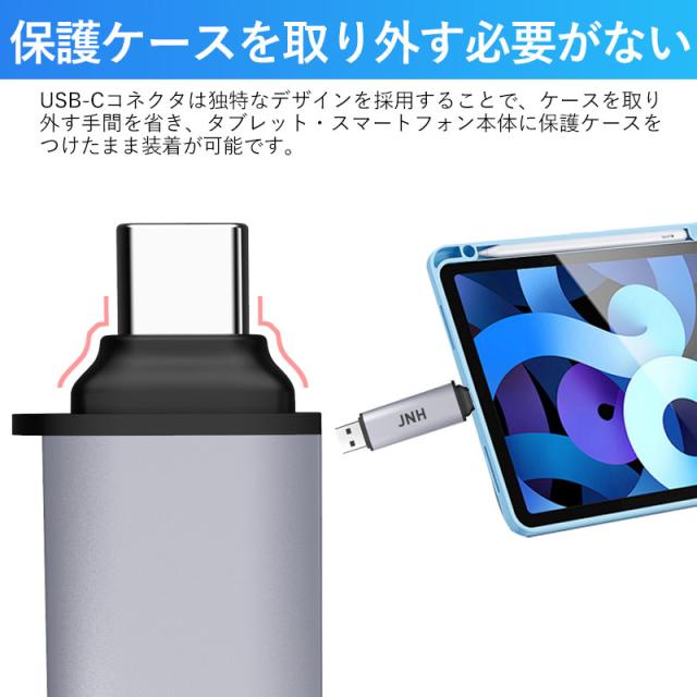 ■独特なデザイン:USB-Cコネクタは独特なデザインを採用することで、ケースを取り外す手間を省き、タブレット・スマートフォン本体に保護ケースをつけたまま装着が可能です。