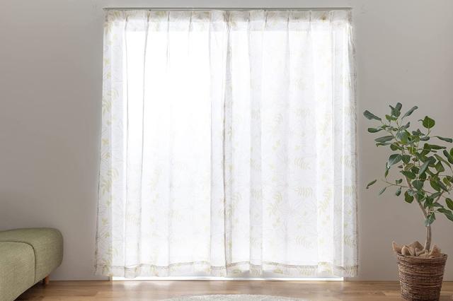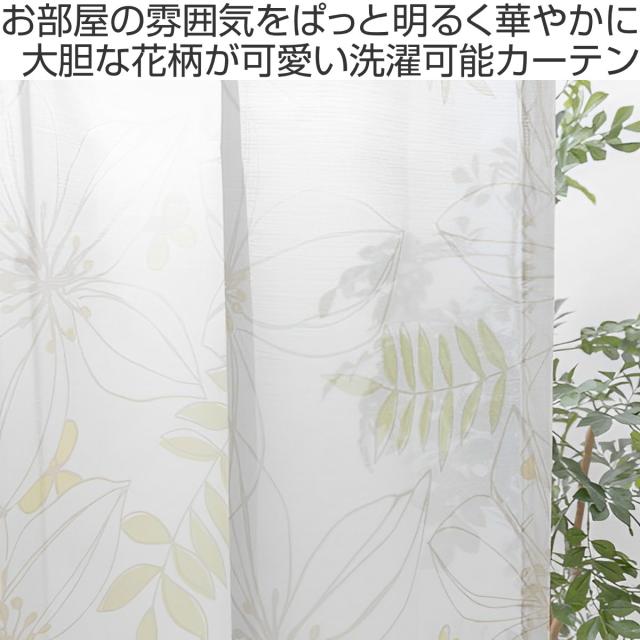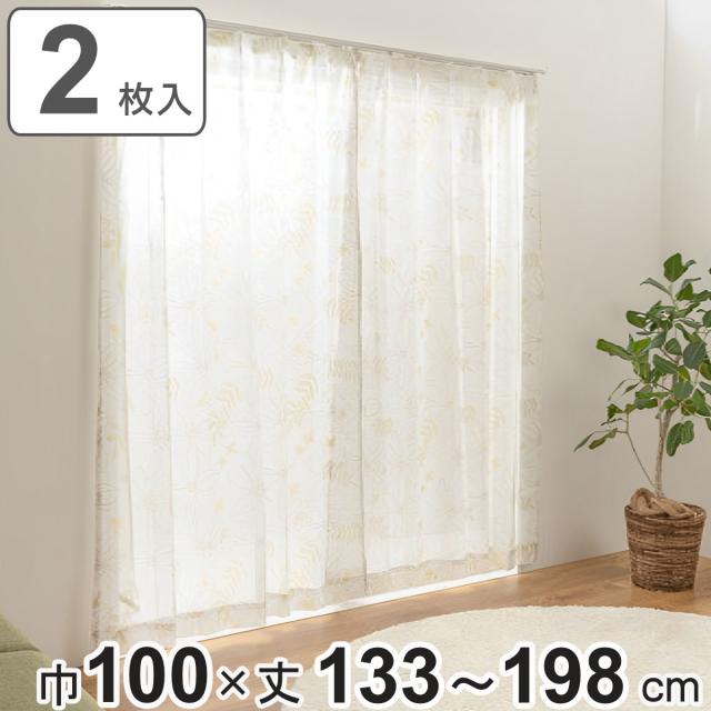 レースカーテン ウォッシャブル 花柄レースカーテン 100×133〜198cm 2枚組 ( カーテン レース シアーカーテン ボイルレースカーテン 既製品 両開き 2枚 花柄 ボタニカル アジャスターフック 天井付け 1.5倍ヒダ 透け感 )