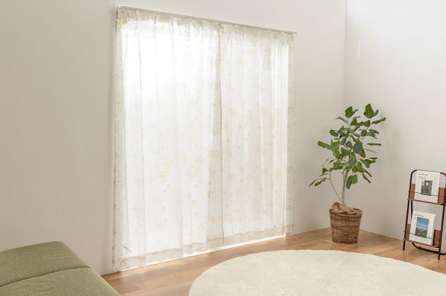 大胆な花柄が可愛らしい洗濯可能レースカーテン