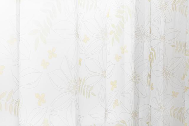 大胆に描かれた花柄が可愛らしいレースカーテンです。外から光が差し込むと柄の影が床に落ち、いつものお部屋をぱっと明るく華やかな空間へと変えてくれます。洗濯可能でお手入れもしやすく、こだわりのインテリアにもぴったりです。