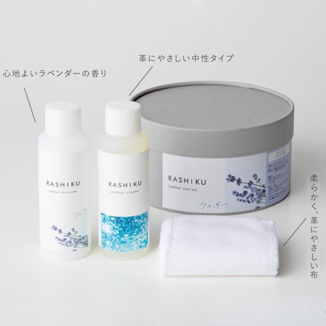 レザーケアセット RASHIKU 日本製 革製品 ギフト ( レザーケア 靴磨きセット シューズクリーム クリーナー 靴磨き 革靴 ツヤ出し 革 レザー 保湿 乾燥 香付き 植物由来 クリーム 手入れ 本革 艶出し レザーワックス )