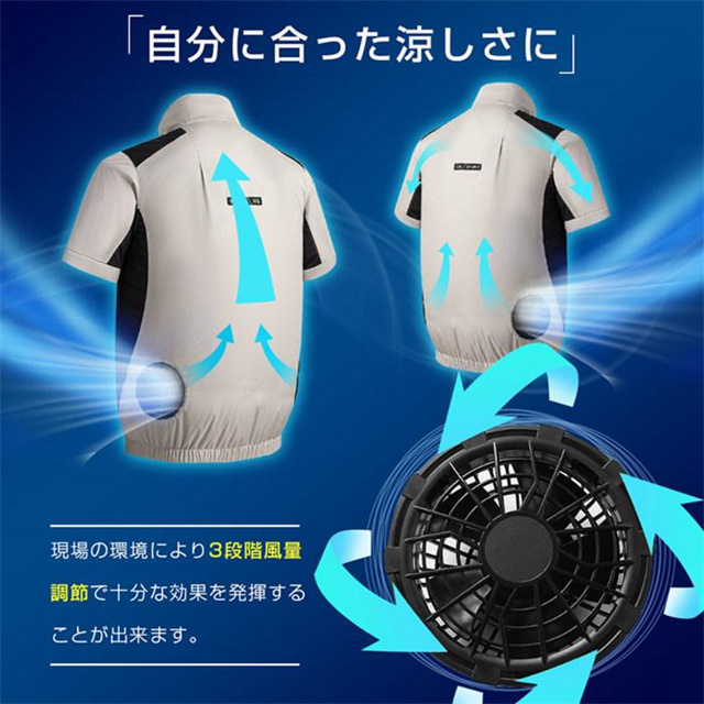 空調服 作業服 扇風機 夏 半袖 ファン付き 仕事服 アウトドア 大風量 USB給電 熱中症対策 紫外線対策 空調ウェア 空調扇風服 2023