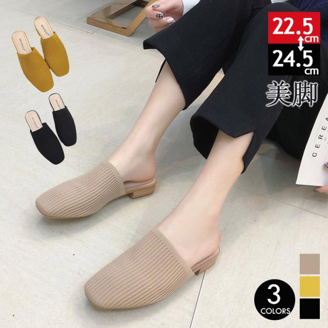 サマーサンダル夏 海 サンダル ニット スリッパ 疲れにくい ミュールサンダル ローヒール 美脚 カジュアル 快適 楽ちん ぺたん