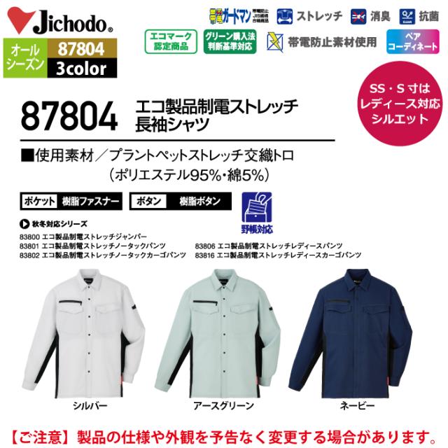 【87804 エコ製品制電ストレッチ長袖シャツ】