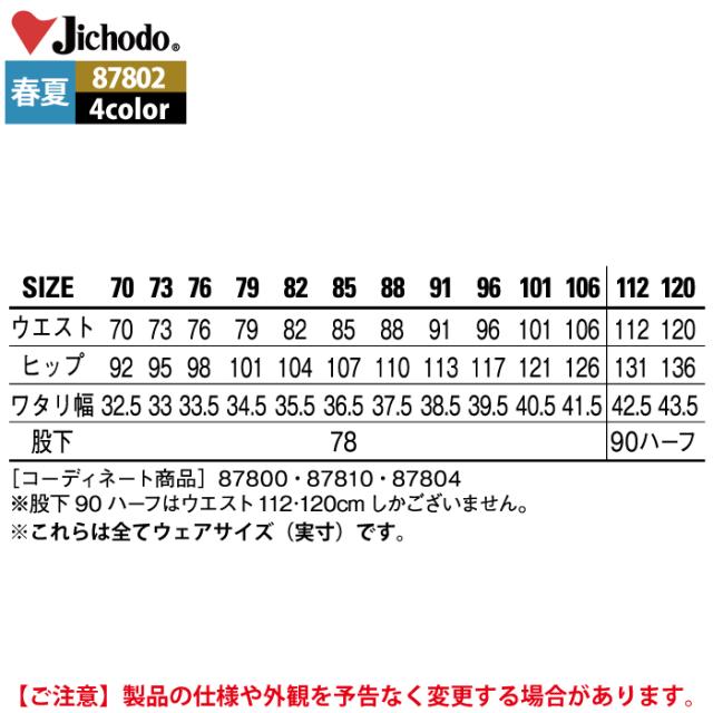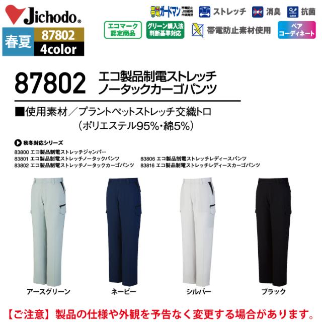 自重堂 作業服 87802 エコ製品制電ストレッチノータックカーゴパンツ 112-120 春夏用 作業着