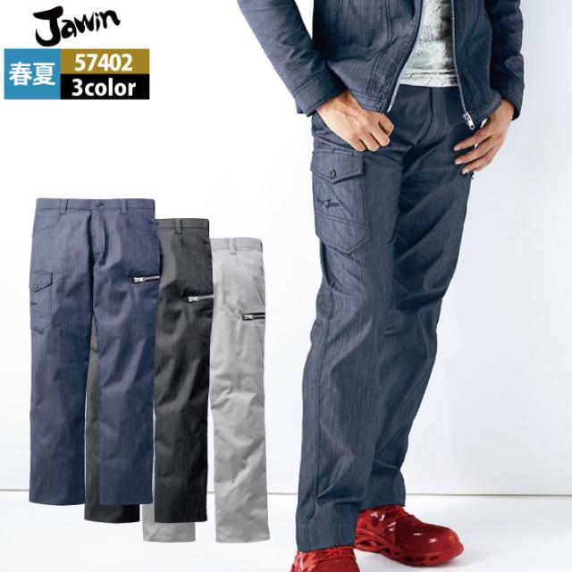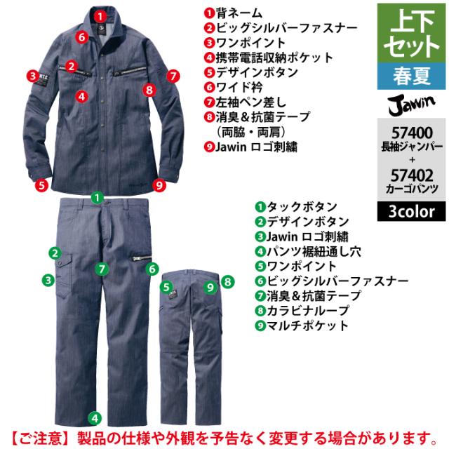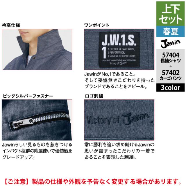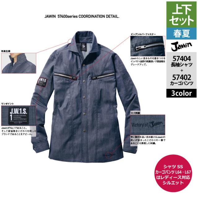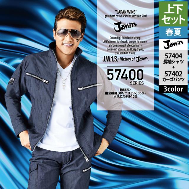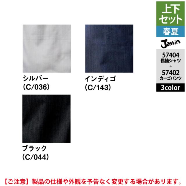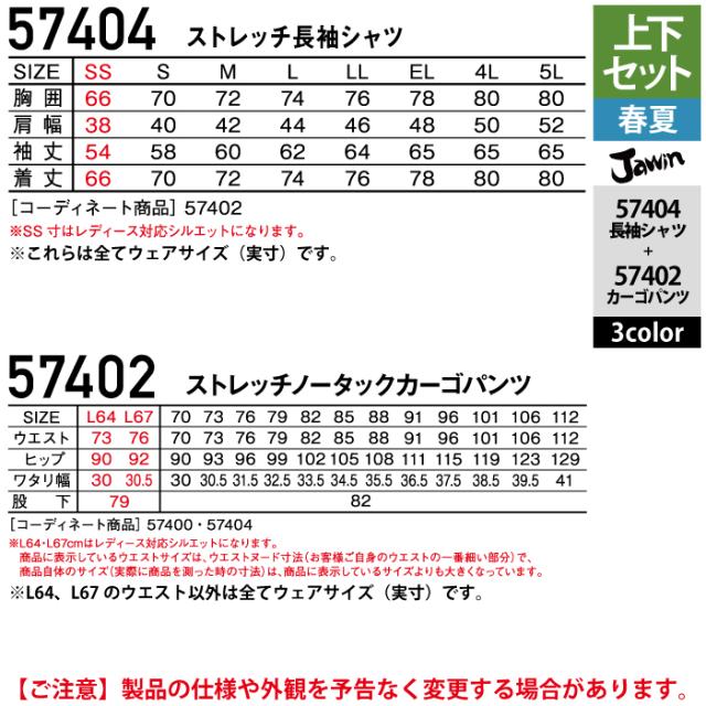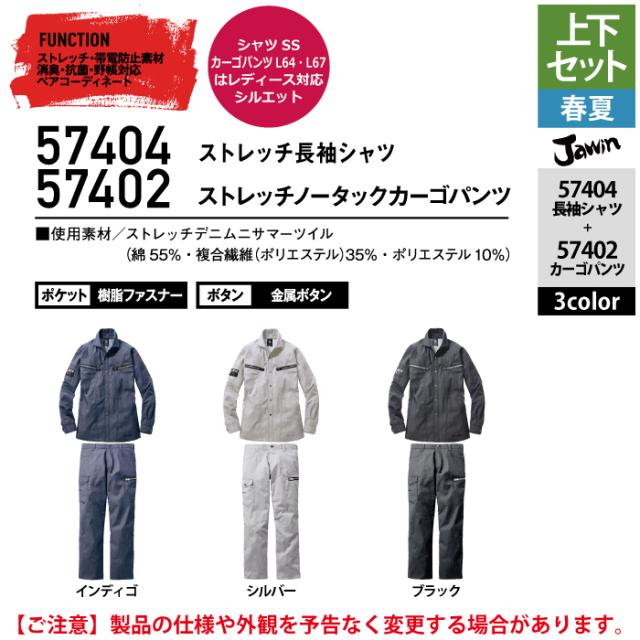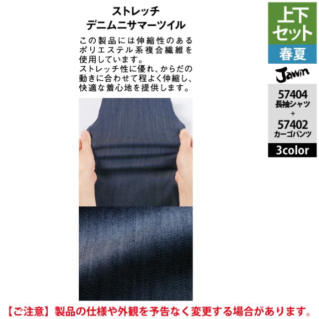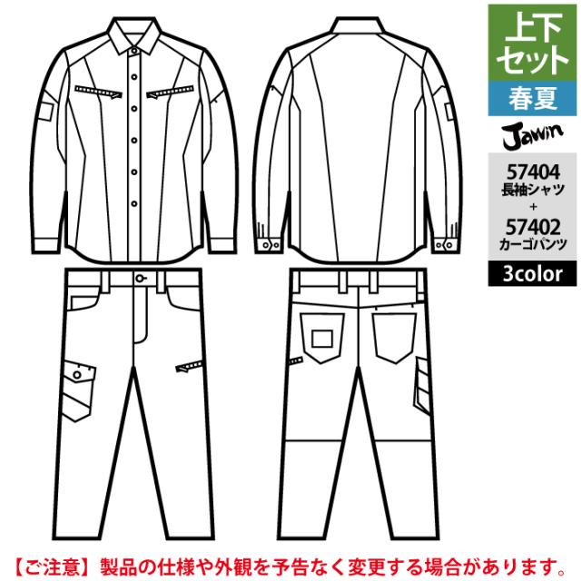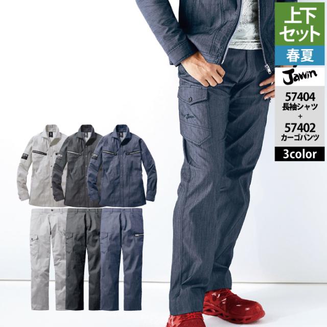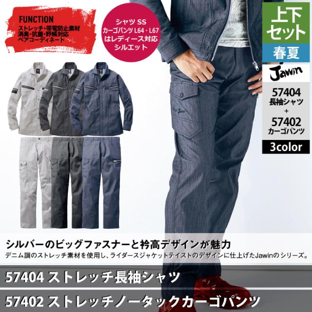 作業服 春夏用 自重堂 ジャウィン JAWIN 上下セット 57404 ストレッチ長袖シャツSS-EL と 57402 ストレッチノータックカーゴパンツ L64-101 作業着