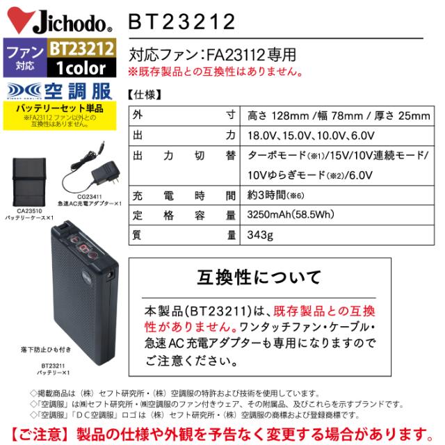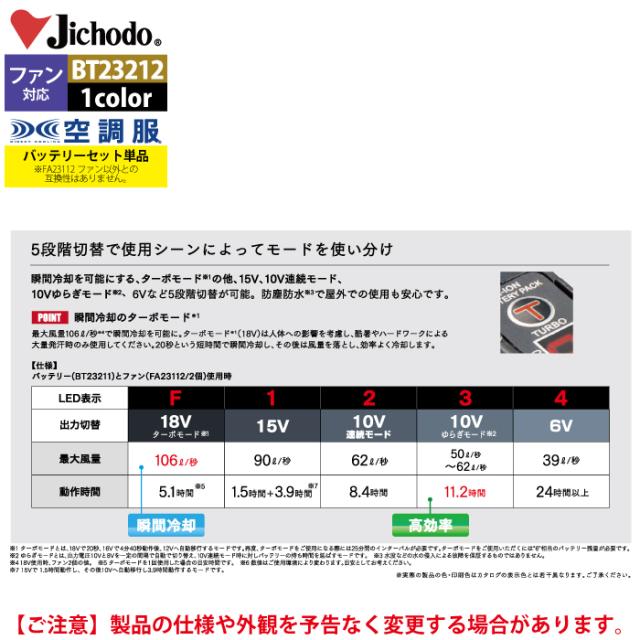 空調服 自重堂 作業服 BT23212 空調服バッテリーセット18V F 作業着 春夏用 熱中症 レジャー アウトドア スポーツ