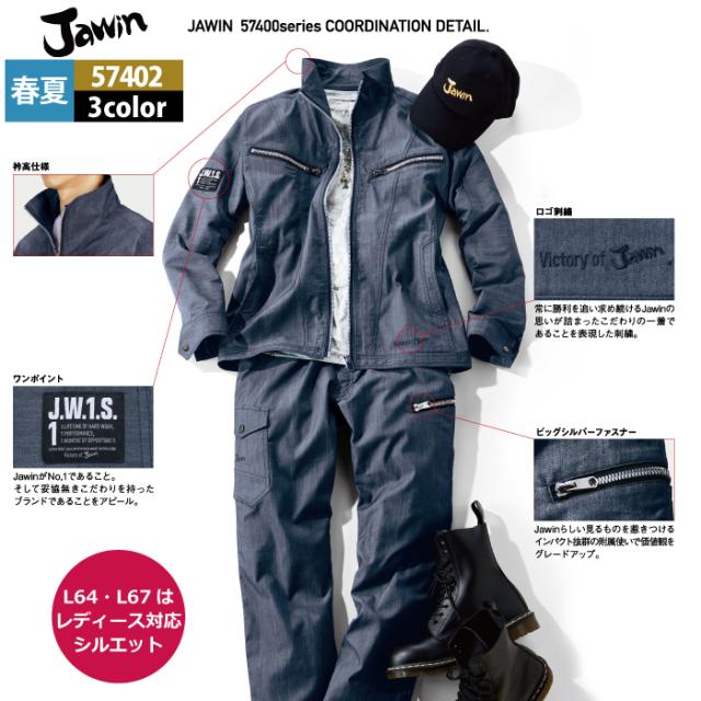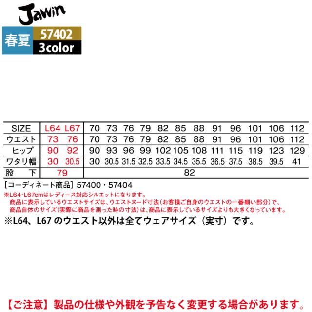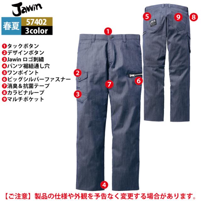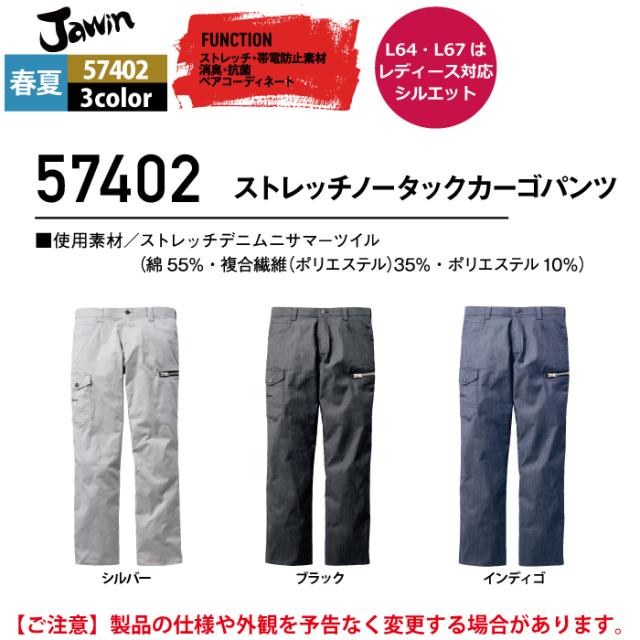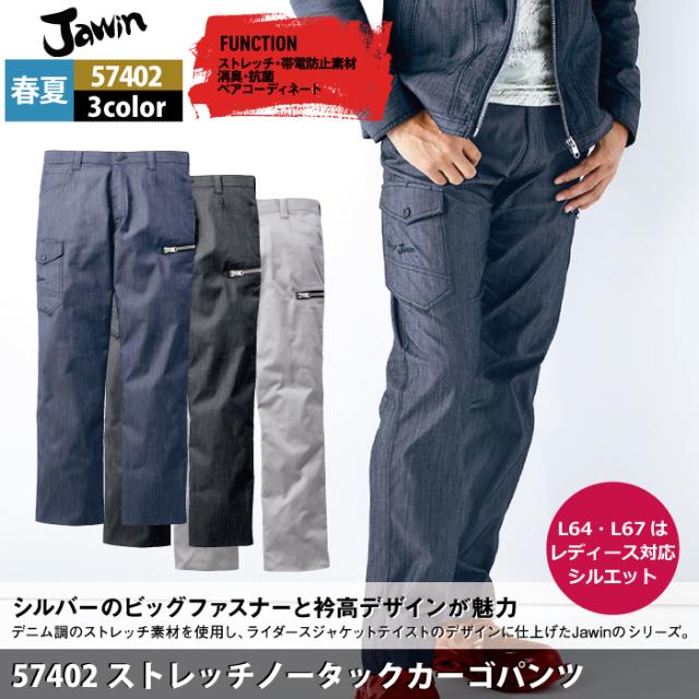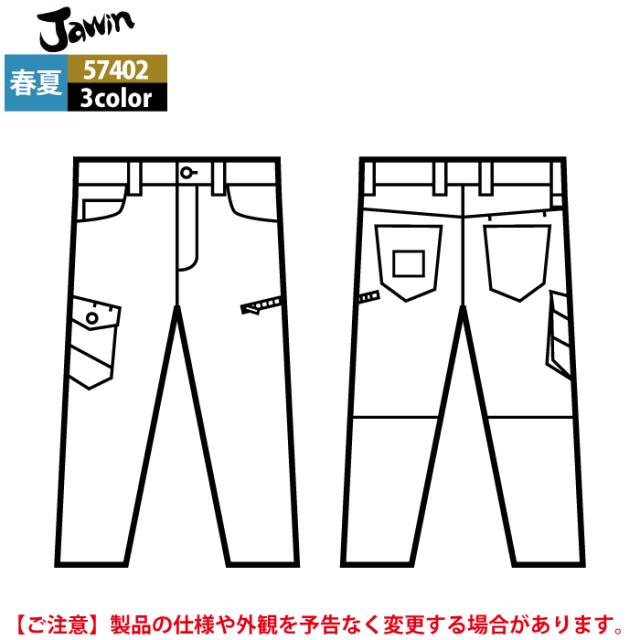作業服 春夏用 自重堂 ジャウィン JAWIN 57402 ストレッチノータックカーゴパンツ L64-88