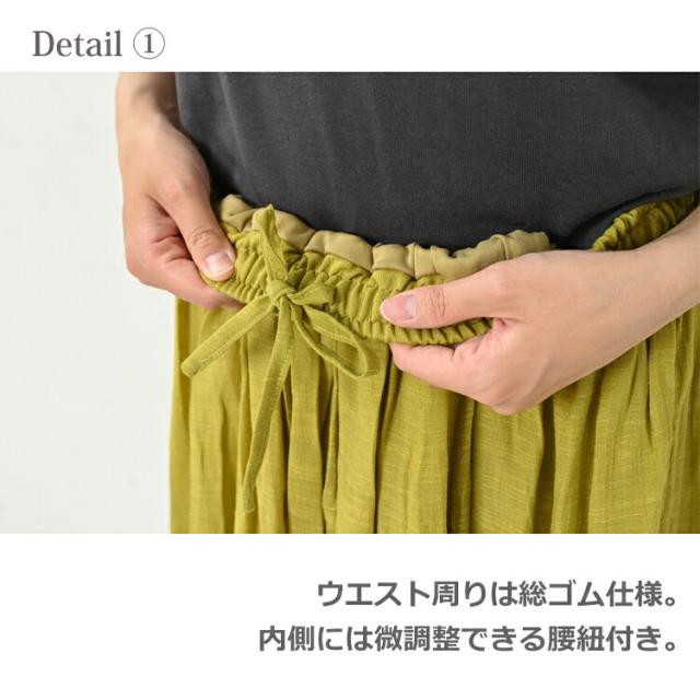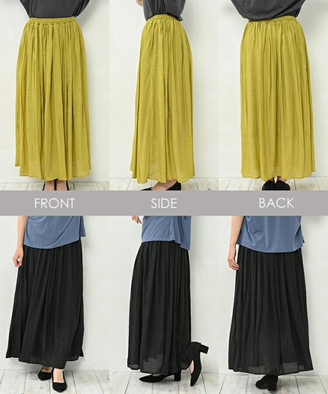 いつものスタイルが ぱっと華やぐギャザースカート。 一枚で穿いても透けの心配がない 膝下丈の裏地付き。 オシャレを楽しみながら 楽ちんな穿き心地を叶える主役級スカートです。 |