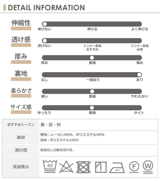 | 素材 | 表地:レーヨン60%、ポリエステル40% 裏地:ポリエステル100% |