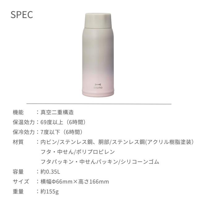 Bruno 水筒 軽量 ステンレス スクリューボトル マグボトル BHK271 350ml ブルーノ 洗いやすい 保温保冷 medium おしゃれ 大人 子供 少量 スクリュー ボトル