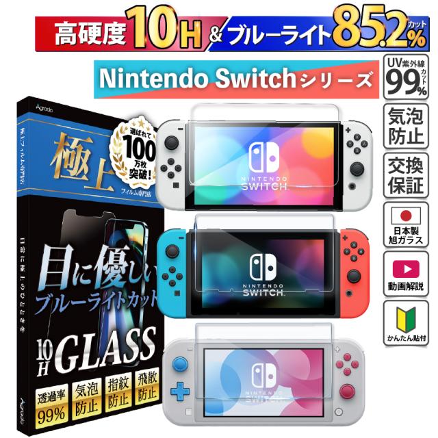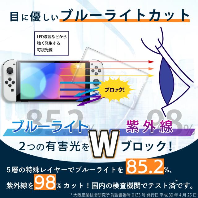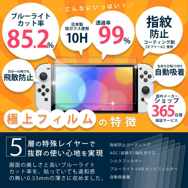 Nintendo Switch 2 対応 各種シリーズ 有機EL Lite ガラスフィルム ブルーライトカット 目に優しい かんたん 安全 安心 お子様に プレゼント 日本製 透明ガラス 85.2%カット 保護 旭硝子製 保証 スイッチ スウィッチ ニンテンドー 防水ケース ポイント消化 送料無料