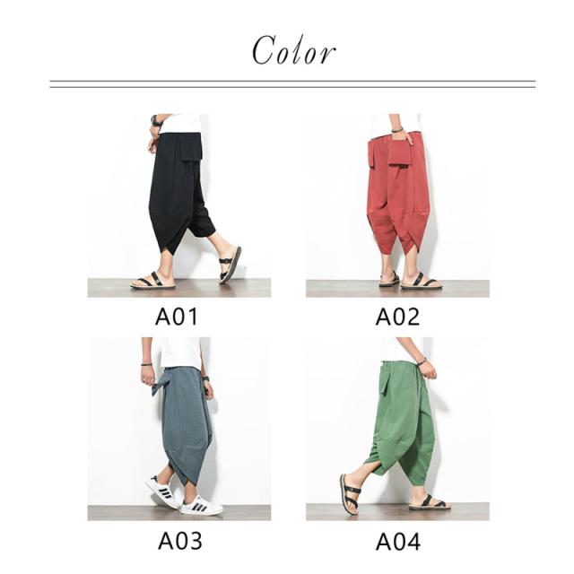 サルエルパンツ ワイドパンツ メンズ イージーパンツ アラジンパンツ リネンパンツ 七分丈 ゆったり 無地 父の日 プレゼント 大