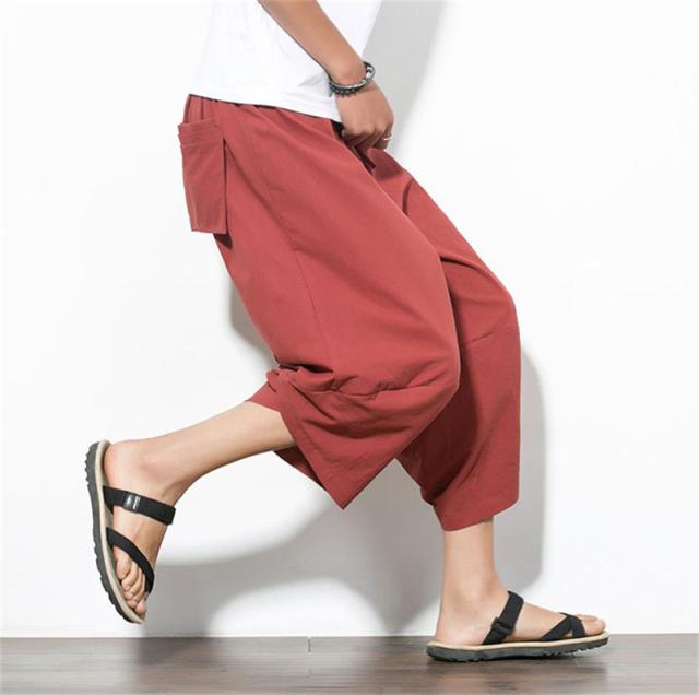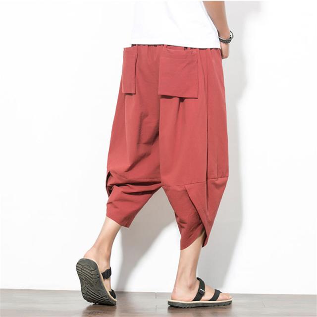 ☆キーワード:サルエルパンツ ズボン アラジンパンツ クロップドパンツ ワイドパンツ 総柄プリント 亜麻 男 民族風 おしゃれ ゆったり カジュアル 7分丈 ユニセックス ハーフパンツ 夏服 部屋着 ダンス 袴パンツ ハーフパンツ ポケット 綿麻 接触冷感