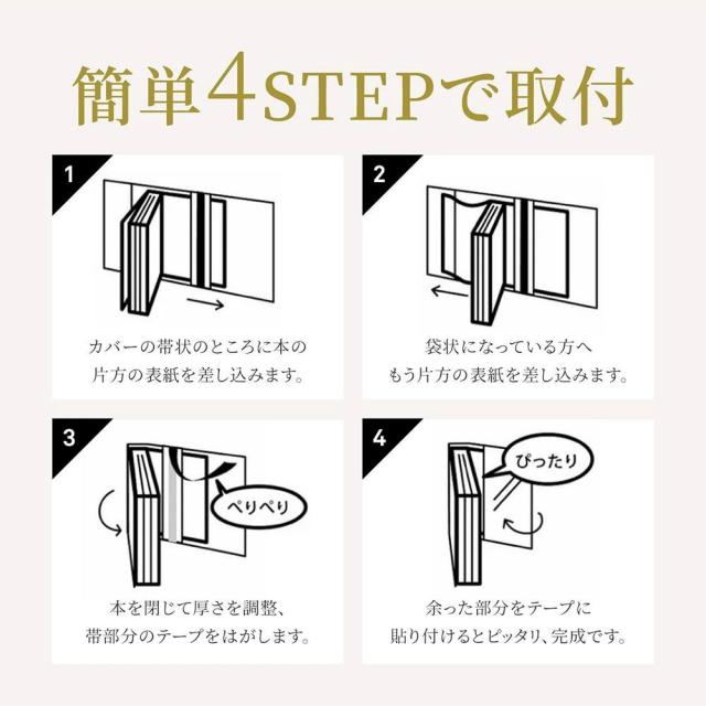 静電防止剤、帯電防止剤が含まれているので、快適にブックカバーを取り付けできます。