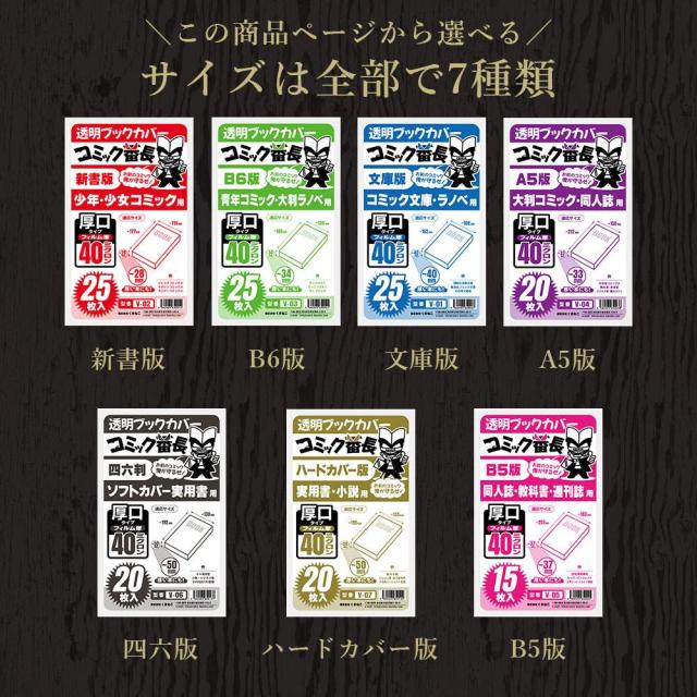- サイズ展開が豊富なので有難いです。 特に四六版とハードカバーは滅多に見ないのでリピート確定です。