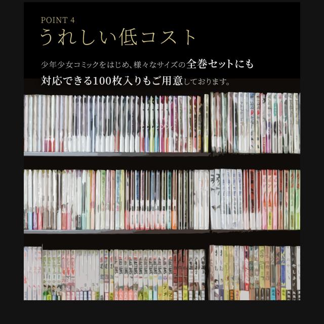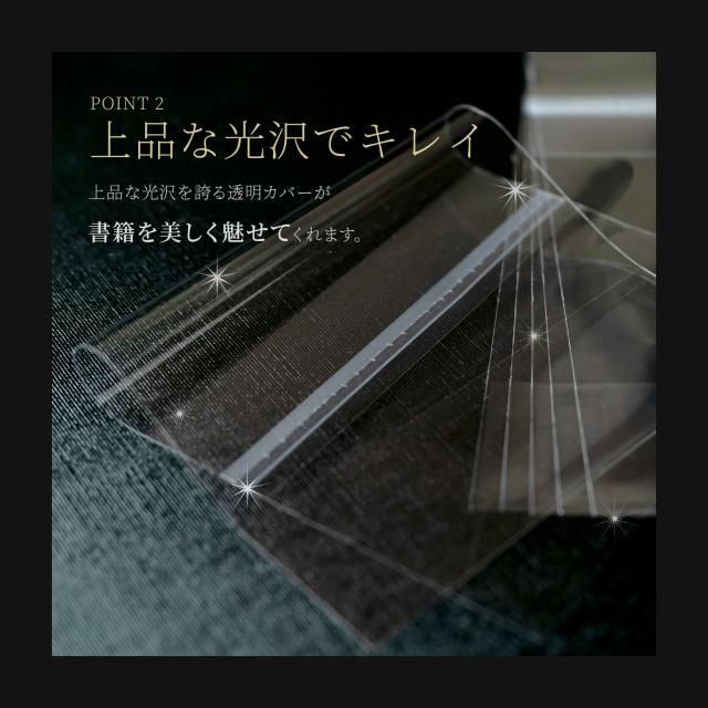 透明度が高いOPPフィルムを採用。漫画やイラスト集など、表紙を本棚に飾りたい方にもおすすめです。